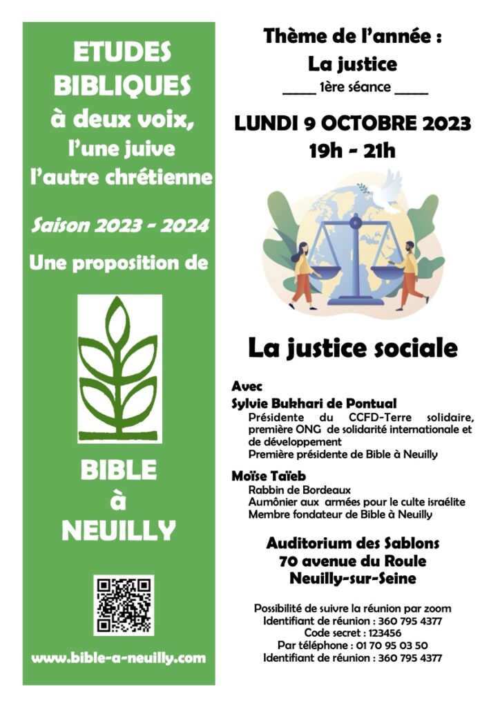Depuis l’origine de Bible à Neuilly, une Commission biblique comprenant des biblistes chevronnés de l’ensemble de nos communautés, chrétiennes et juive, est au cœur de l’Association. Elle propose à un large public une série d’activités directement inspirées par les lectures juive et chrétiennes de la Bible comme les cycles annuels d’Études bibliques. Les Études bibliques à deux voix (l’une juive, l’autre chrétienne) sont au cœur de la vocation de Bible à Neuilly : proposer côte à côte des lectures juives et chrétiennes de la Bible pour un enrichissement mutuel, dans le respect des différences. Une lecture d’un livre de la Bible est faite avec à chaque séance un bibliste juif et un bibliste chrétien.